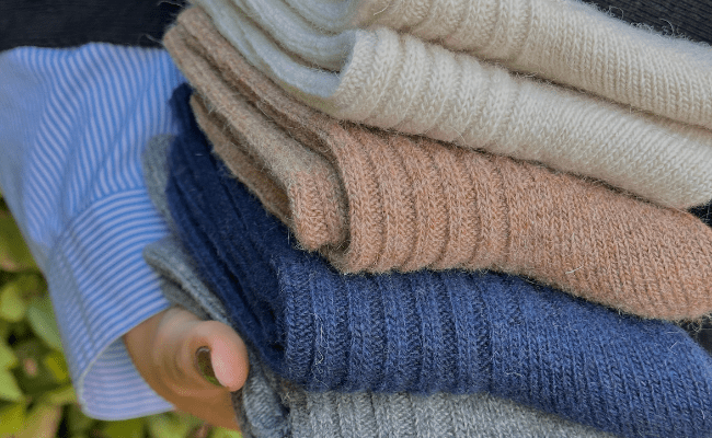 Udforsk kreativiteten og løft din stil med vores alsidige sjaler og tørklæder, der kan styles på utallige måder. Tag et blødt merinouldstørklæde løst om halsen for en afslappet og varm følelse, eller bind det i et elegant knude for et mere struktureret udtryk. Vores silketørklæder tilføjer glamour til ethvert outfit, enten ved at lade dem falde frit eller binde dem. Omfavn luksus med et cashmere-tørklæde, der kan slynges over skuldrene eller styles som en chic poncho. Baby alpaca uld tørklæder kan ligeledes draperes elegant eller snoes for en sofistikeret tekstur. Uanset om du foretrækker en boheme-look, klassisk elegance eller en afslappet hverdagsstil, kan vores sjaler og tørklæder tilpasses efter dit humør og anledning. Opdag forskellige stylingmuligheder og lad dit personlige udtryk blomstre med vores unikke kollektion af sjaler og tørklæder.