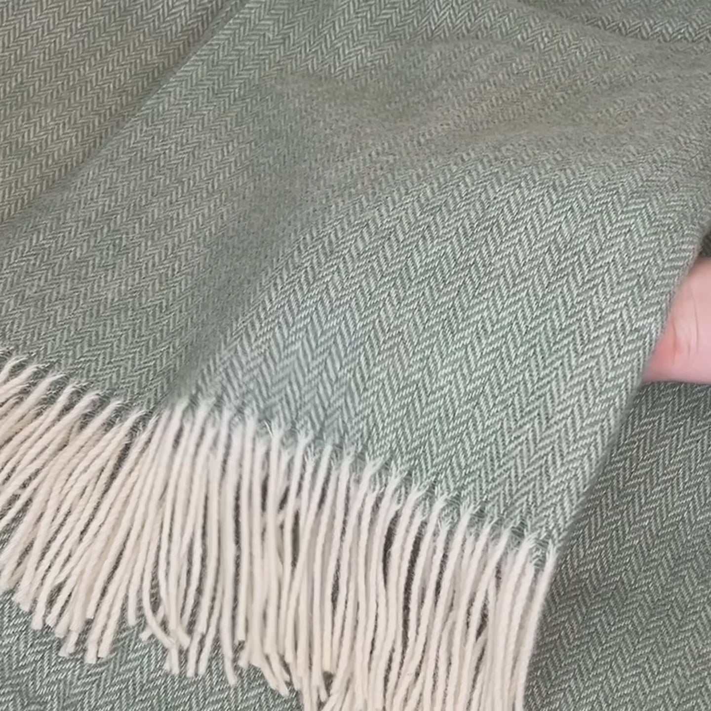 Uldplaid i 100% newzealandsk uld LUX - Lysegrøn m. sildebensmønster