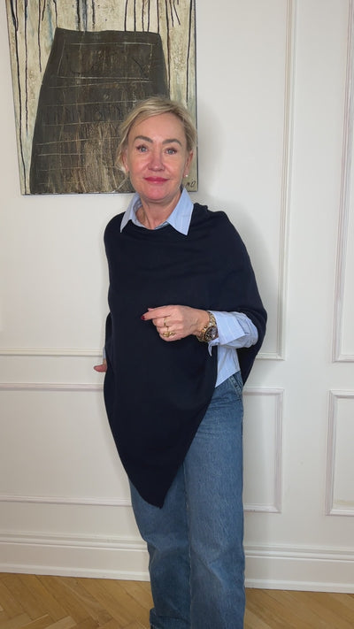 Poncho i 10% cashmere - Mørkeblå Uldplaiden.dk