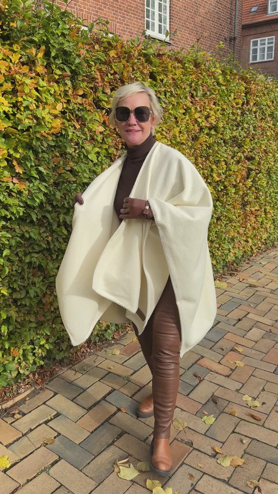 Poncho i 100% merinould - Off white