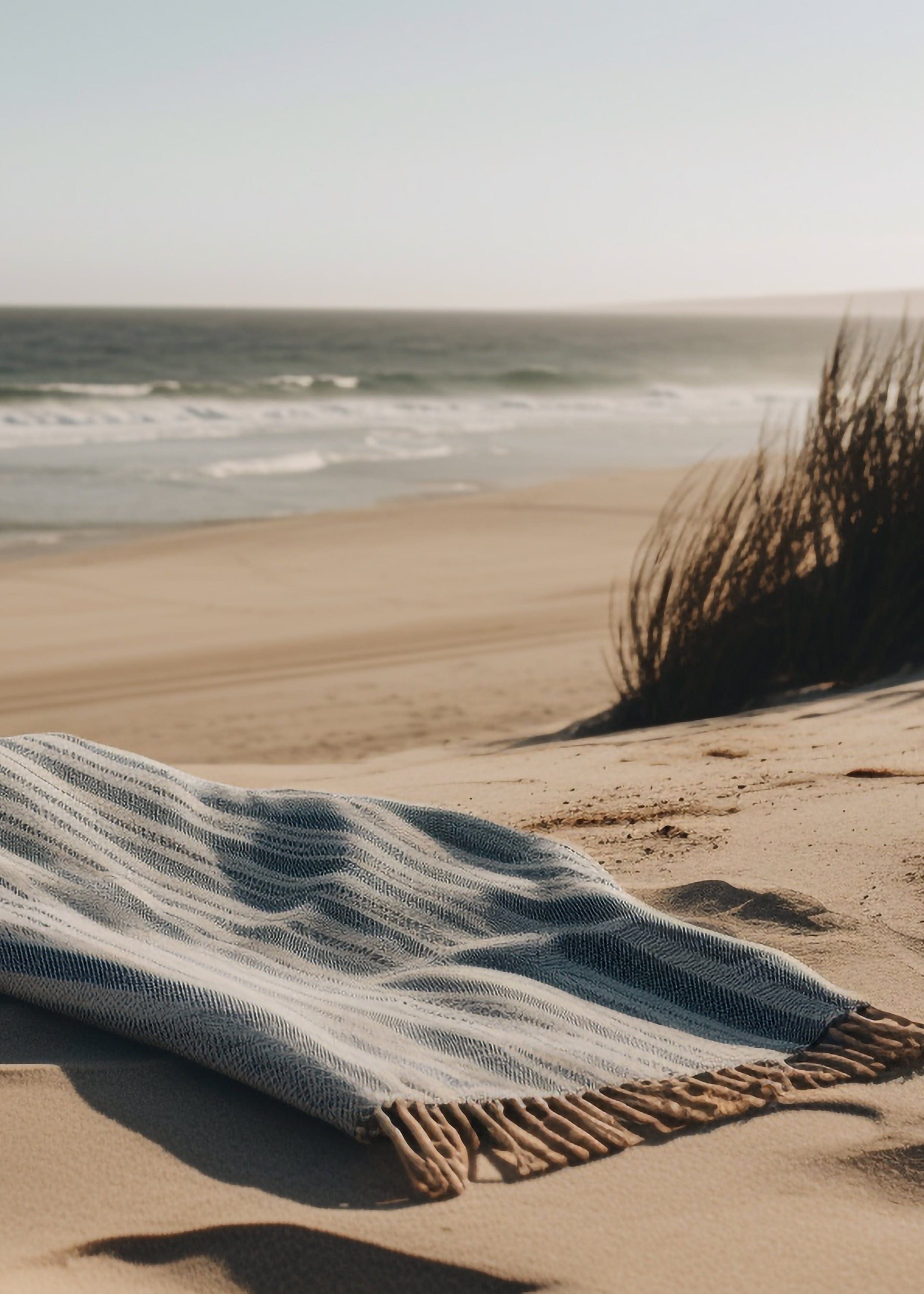 Sommeren betyder sol, strand og lange, afslappede dage ved vandet. For at gøre din strandoplevelse endnu bedre har vi det perfekte tilbehør: strandtæpper i 100% bomuld!