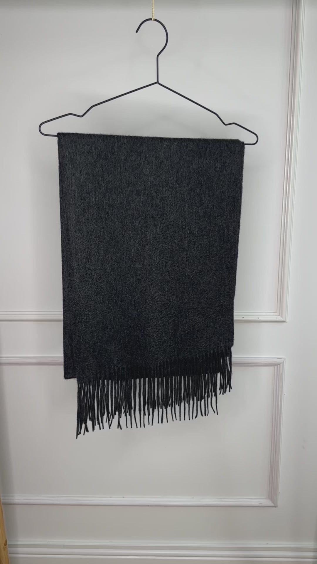 Stilfuldt og elegant damesjal med frynser i mørkegrå. Vores sjaler i 100% Cashmere er lavet af den fineste kvalitet Cashmere uld, som er kendt for sin blødhed, varmeevne og åndbarhed. Cashmere er en type uld, som er opnået fra Cashmere geden, og er kendt for at være en af de blødeste og mest luksuriøse typer af uld.