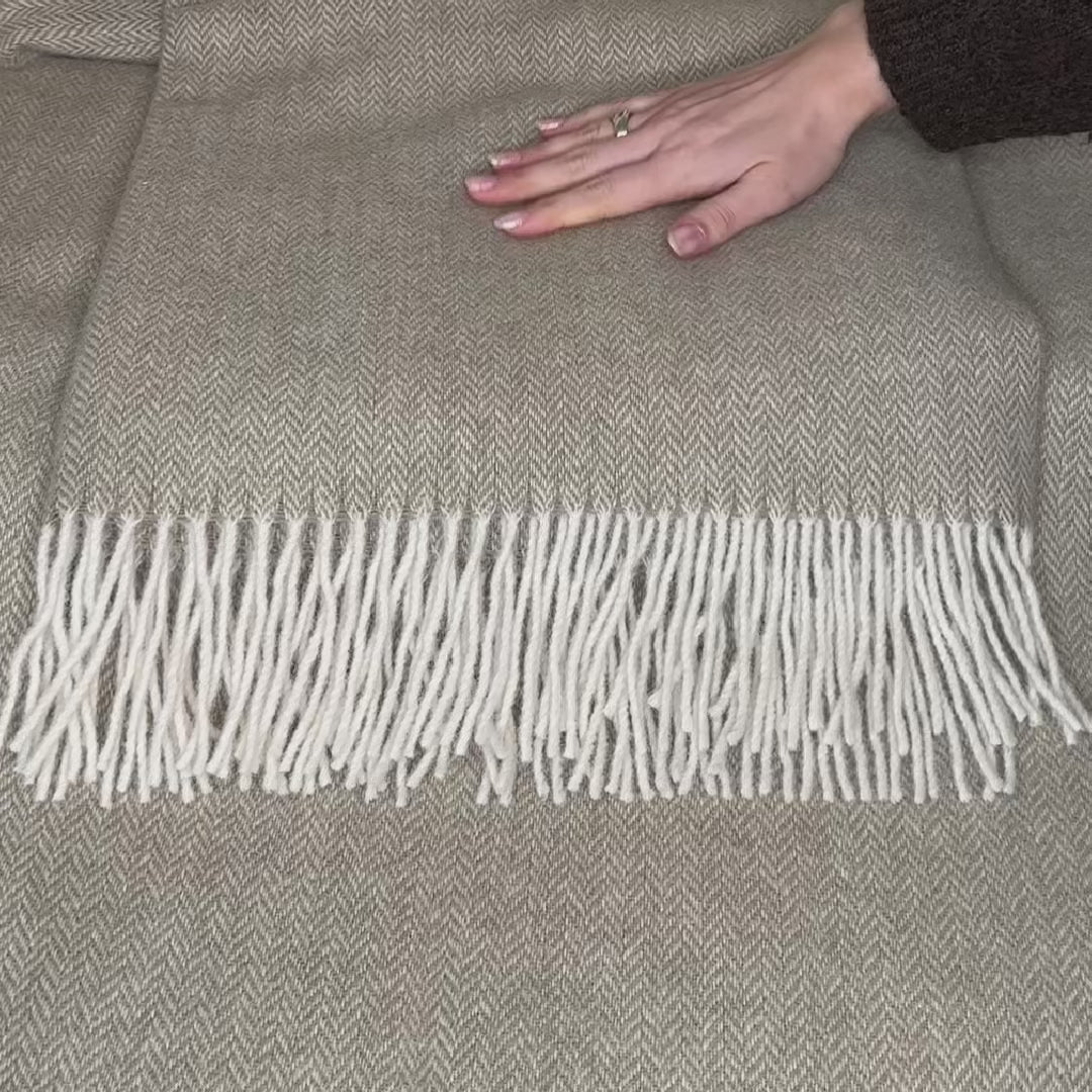 Uldplaid i 100% uld - Pale Kaki m. sildebensmønster (140x200 cm)LUX