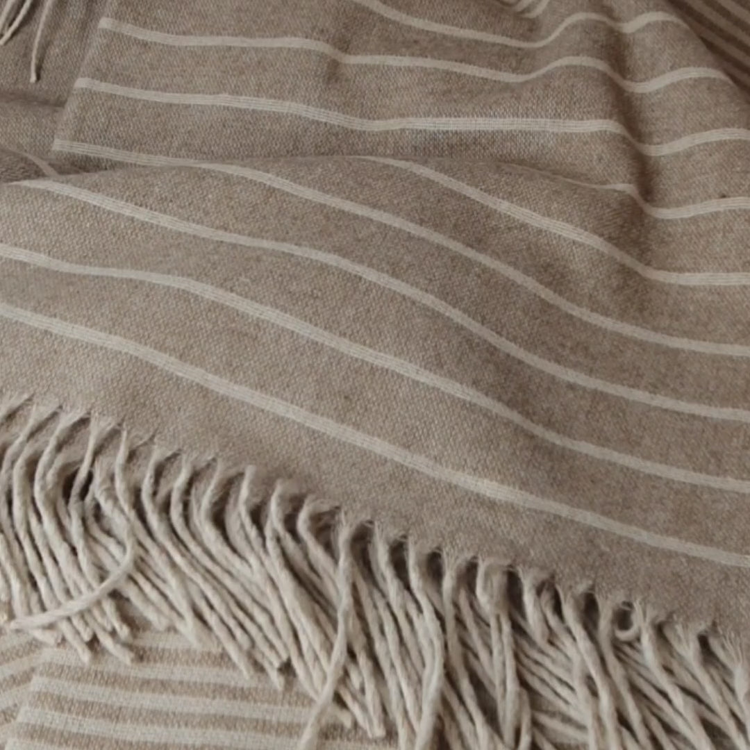 Plaid i 20% Merinould - Brun m. Off White Striber (140x200 cm)
