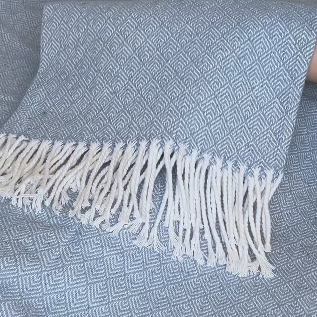 Denne plaid i Lyseblå mes mønster er sammensat af 50% recycled bomuld. Den blå farve og mønsteret på plaiden giver et friskt og moderne look, der passer perfekt ind i en række forskellige indretningsstile. Den mønstrede plaid i blå giver liv og spil i indretningen og kan bruge til mange forskellige formål. Den er blød og behagelig at røre ved, og kan bruges både som tæppe eller som et stykke til at drapere over en sofa eller seng. Få en mere bæredygtig indretningsstil med vores recycled plaider i 50% bomuld og giv det genanvendelige materiale et nyt liv.