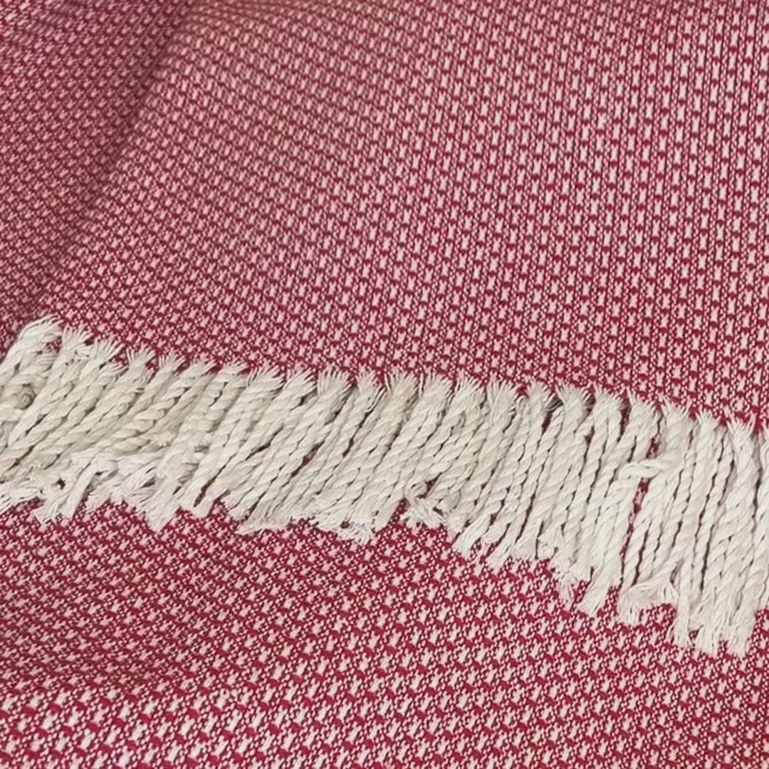 Recycled Bomuldsplaid - Rød m. hvid (140x200 cm)