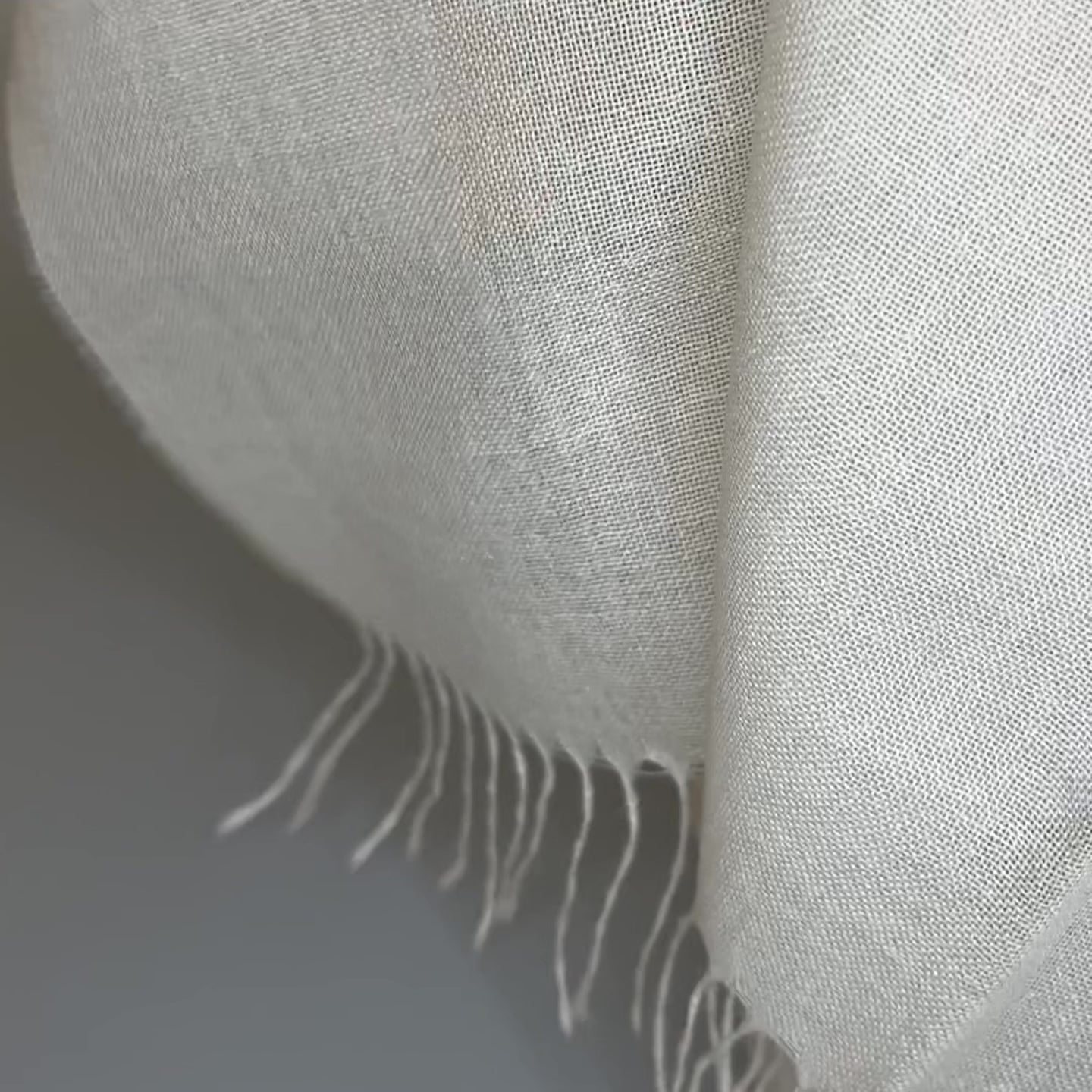 Dyk ned i en verden af luksus og komfort med vores eksklusive tynde sjal af en blanding af 70% baby alpaca uld og 30% silke.