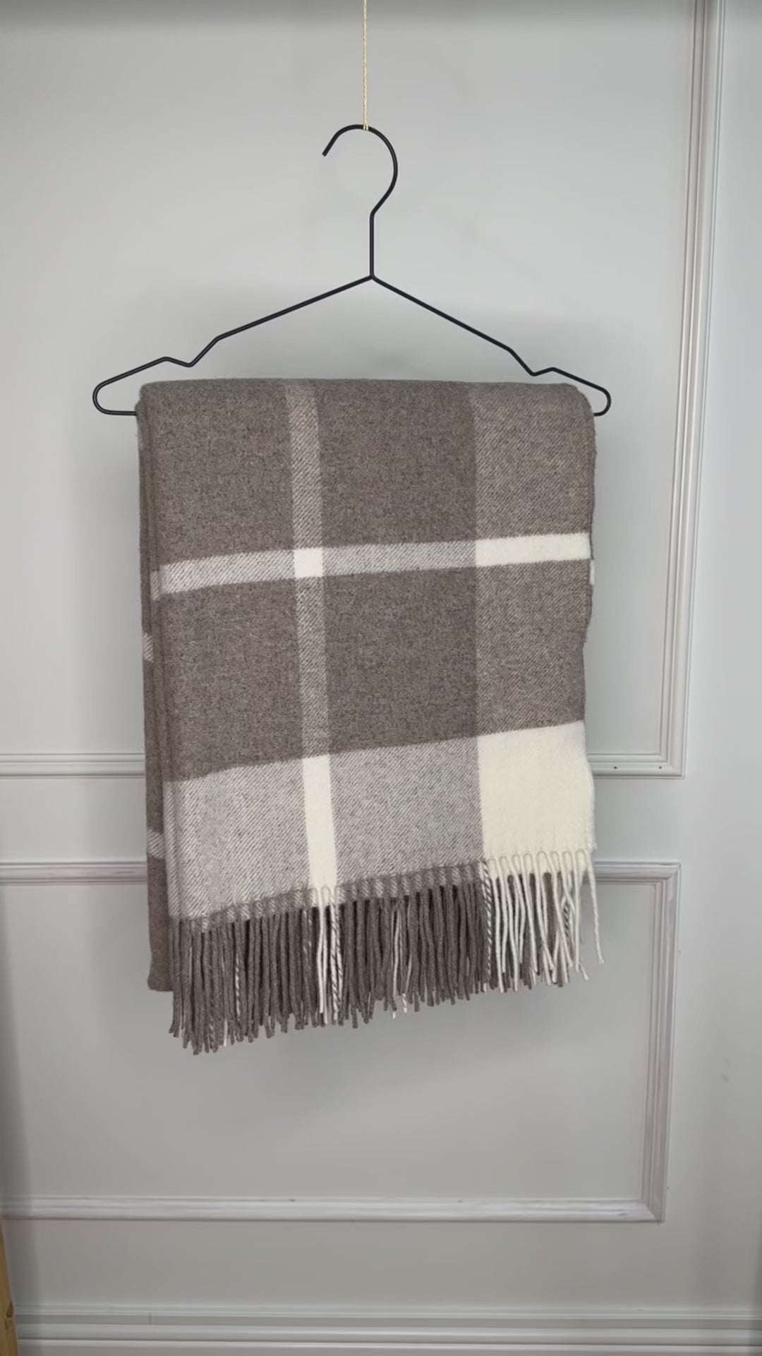 Uldplaiden i 10% cashmere og 90% merinould med beige tern (140x200 cm) repræsenterer det ypperste inden for komfort og elegance. Denne eksklusive plaid kombinerer den luksuriøse blødhed af cashmere med den naturlige varme fra merinould, og resultatet er en unik og behagelig oplevelse.