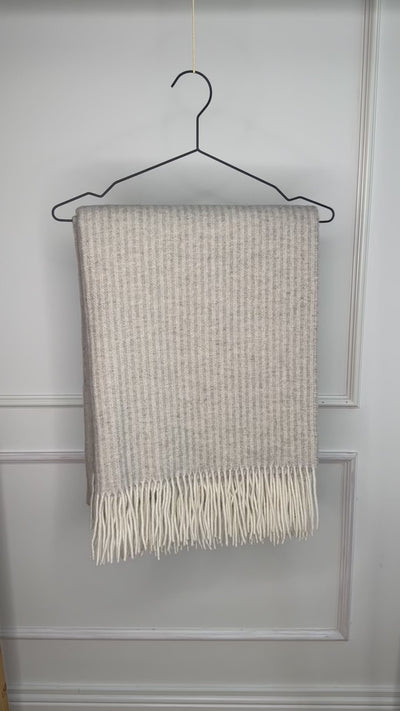 Uldplaid i 10% Cashmere - Beige m. Tynde Striber (140x200 cm)