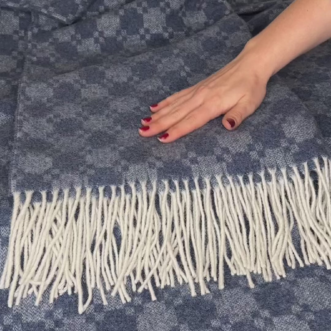 Uldplaid i 10% Cashmere - Navy m. mønster (140x200 cm)