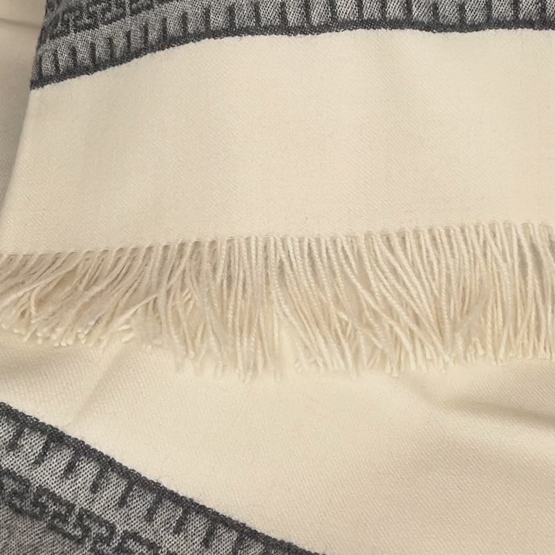 ULDPLAID I 100% BABY ALPACA ULD - OFF WHITE M. GRÅ ALPACA MØNSTER (130x180 CM)
