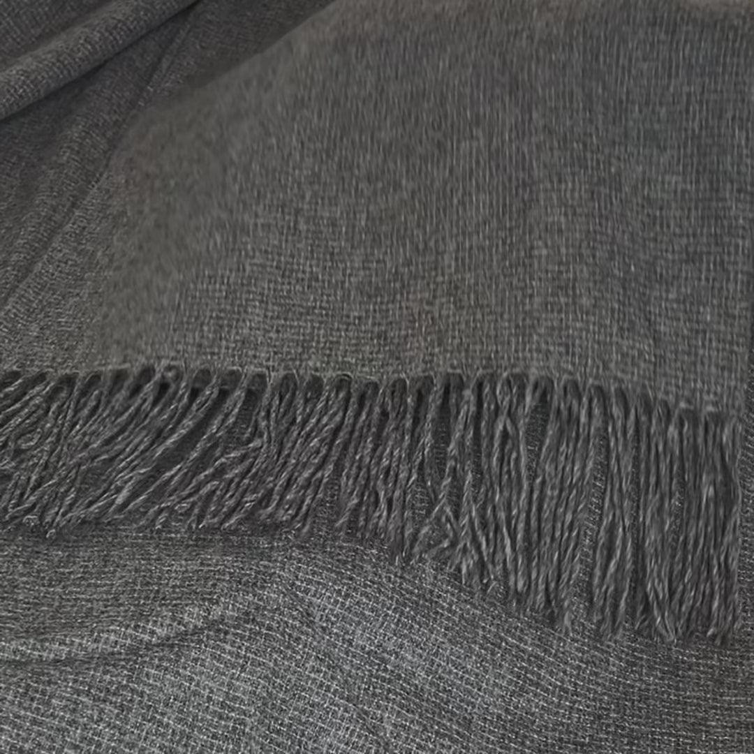 Den smukke mørkegrå farve tilfører et moderne og elegant udseende til ethvert rum og passer harmonisk til en lang række indretningsstile. Uanset om det er til at kaste over sofaen, bruge som et lunende tæppe eller blot som en dekorativ tilføjelse til dit hjem, vil dette plaid give dit rum et tidssvarende præg.