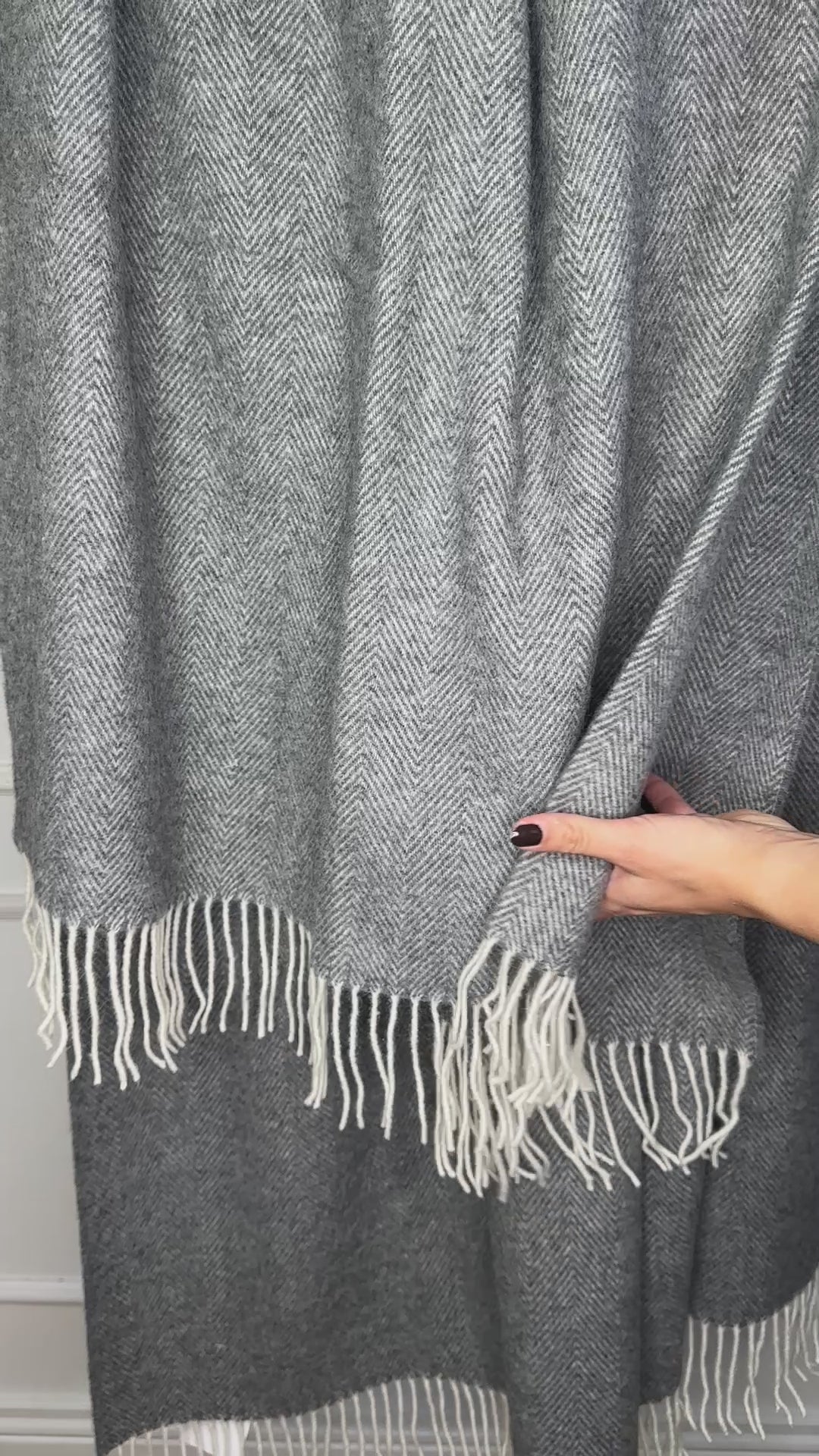Flot uldplaid i Grå m.sildebens mønster