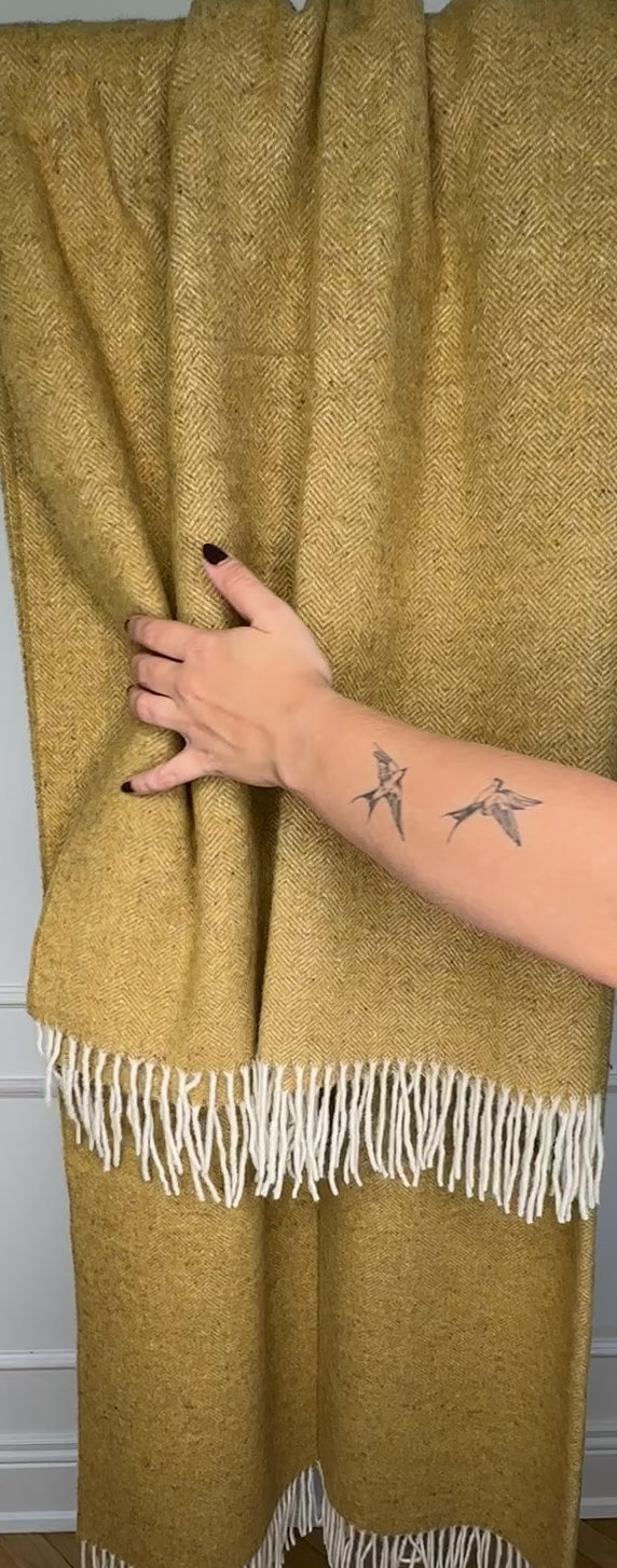 Uldplaid i Merinould - Mustard (140x200 cm)